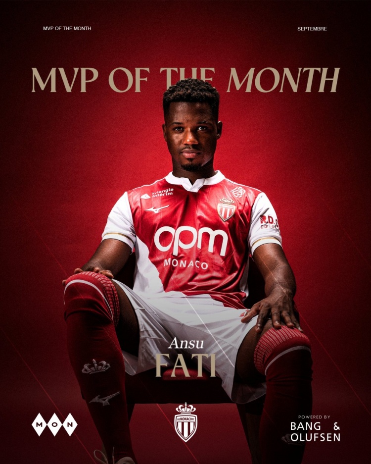 法蒂9月份为摩纳哥出战3场比赛,打进4球。摩纳哥官方社媒晒出海报,文书经由球迷的投票,法蒂当选9月份摩纳哥队内最好球员。