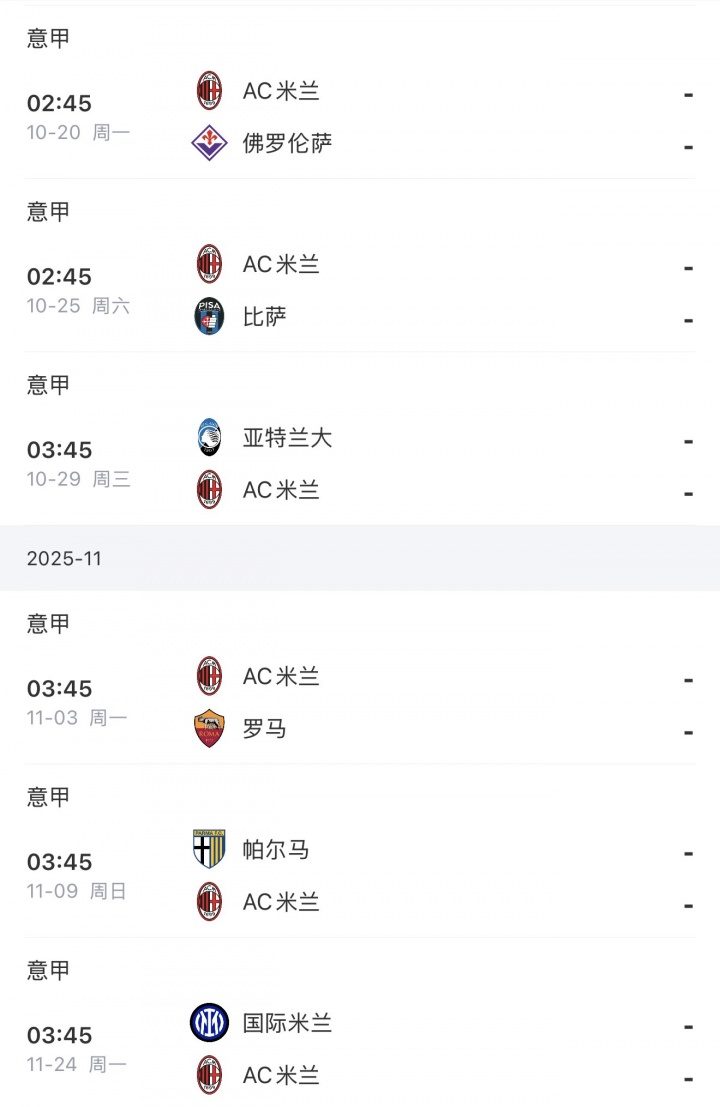 米兰赛程