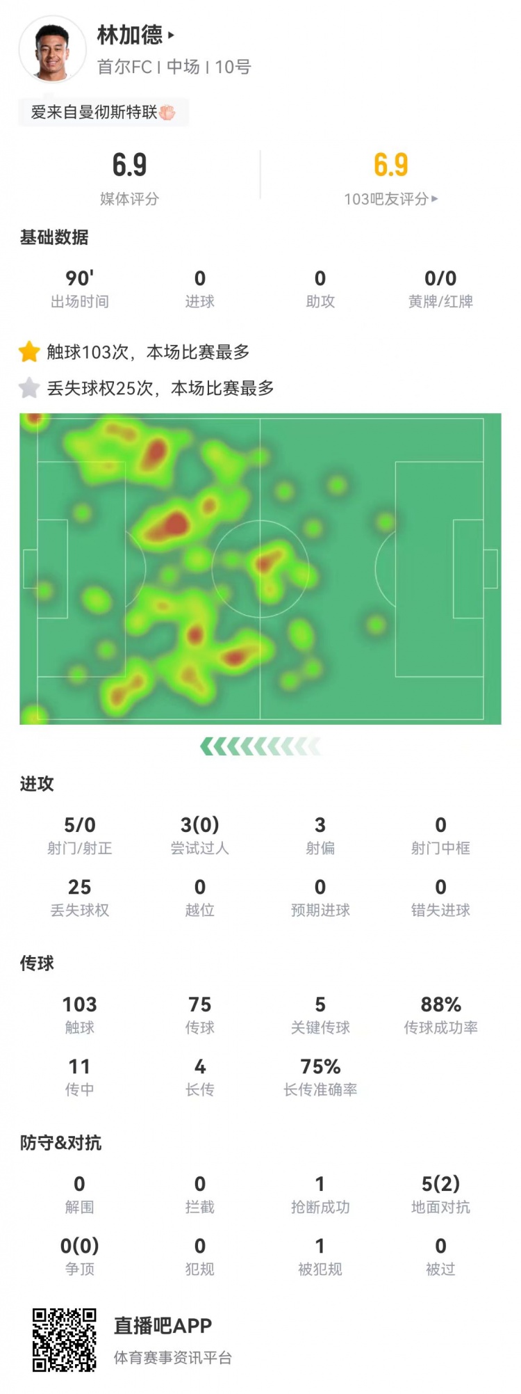 10月22日讯 10月22日,亚冠精英联赛东亚区第3轮,上海申花主场2-0打败首尔FC。首尔FC外助林加德本场比赛踢满全场,5脚射门0射正,3次尝试过东谈主均未收效,丢失球权25次。