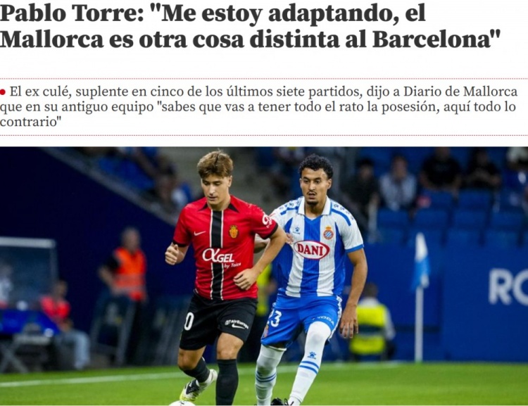 11月17日讯 巴勃罗·托雷今夏从巴塞罗那加盟马洛卡,被视为球队的蹙迫引援。本来托雷在巴萨出场本事不及的情况,并未在马洛卡得到彰着改善。日前,托雷承袭了《马洛卡日报》的采访。