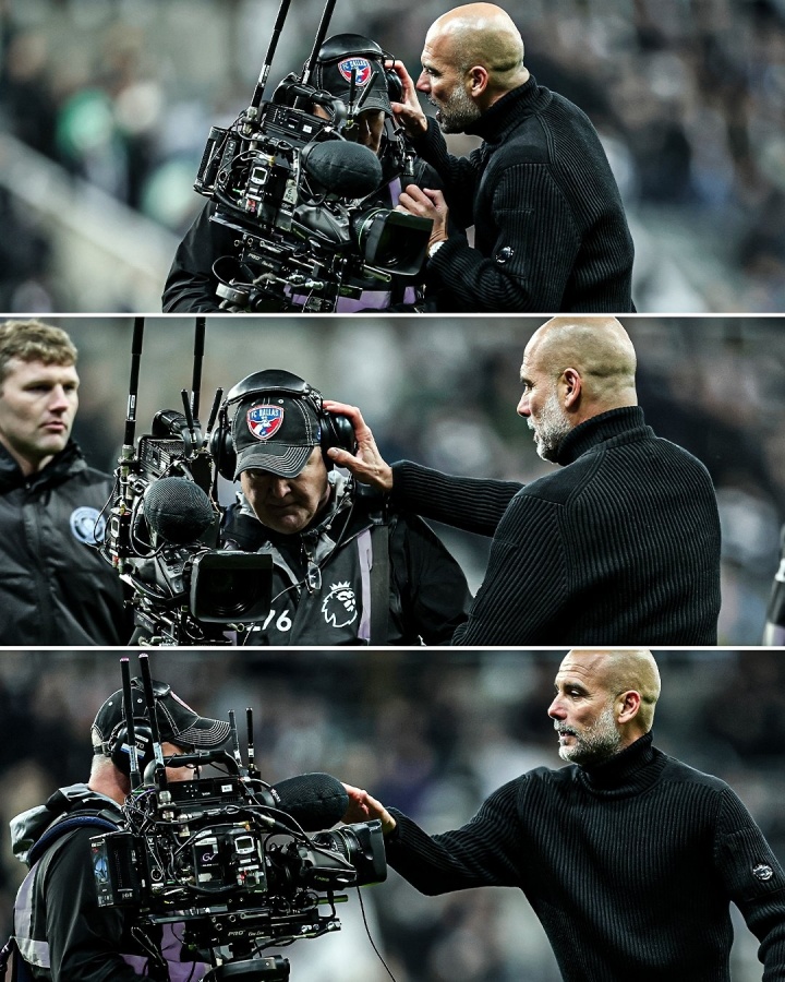 英超第12轮,曼城客场1-2负于纽卡,赛后瓜迪奥拉被拍到疑似与又名录像师发生动怒,并扒开对方的耳机对其耳语。