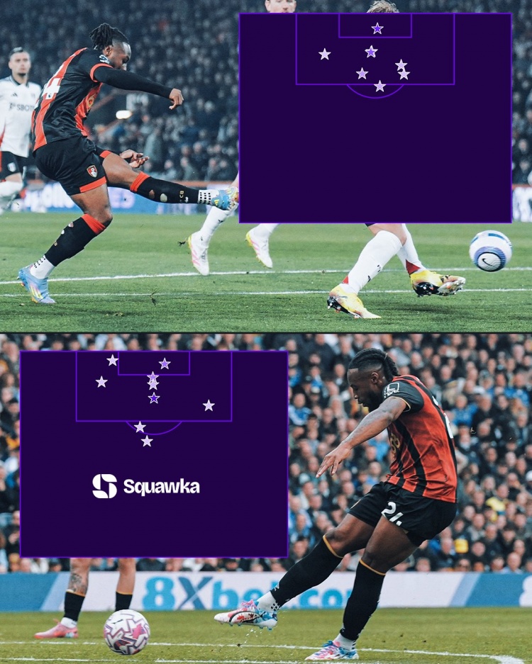 11月28日讯 自上赛季初始,伯恩茅斯先锋塞梅尼奥依然打进了17粒英超进球。据Squawka数据统计,这17个英超进球中,塞梅尼奥左脚打进8个,右脚打进9球。