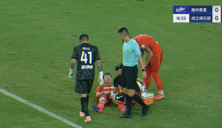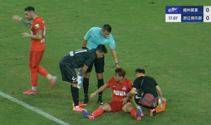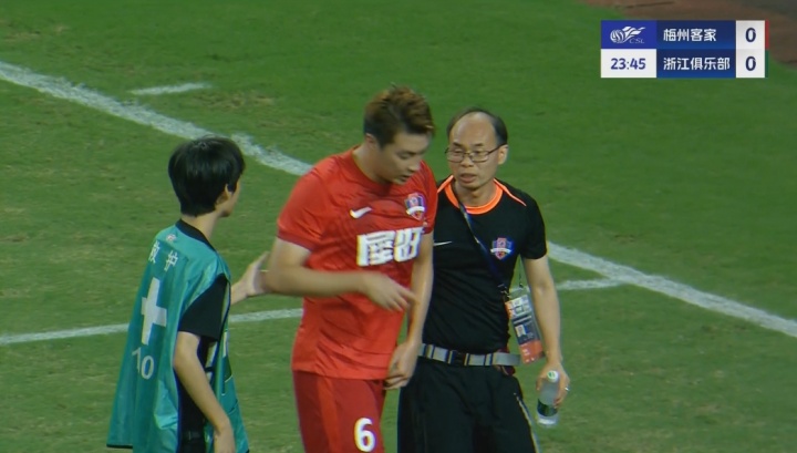 比赛第23分钟,此前就有受伤情况的梅州场上队长廖均健再次倒地表示无法坚合手比赛,随后他被杨瑞琦换下。