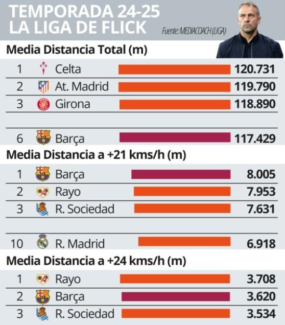 在哈维的率领下,球队通过全面掌控比赛并少许失球获取了冠军。而在弗里克的率领下,球队则通过高强度逼抢和多点着花的进球神志夺冠。但数据披露,这两支球队在每名球员的跑动距离、冲刺次数以及中距离致力方面齐名列三甲。