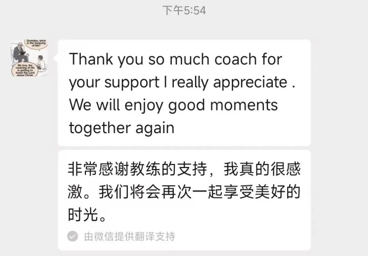 昨宇宙午,红狮足球副总司理、前主帅孙新波通过微信与畴昔爱徒阿萨莫阿疏浚,后者报祥瑞:“现时嗅觉许多了,我很快将领受手术,尽快回来”。