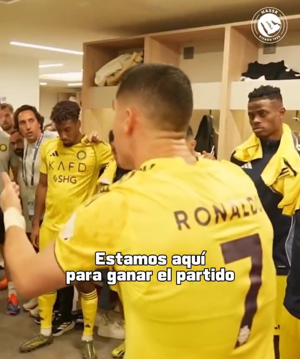 利雅得收效官方当天发布本场比赛幕后花絮,C罗赛前更衣室喊话:让咱们作念好咱们的责任,今天来到这去获取比赛、领跑联赛!加油