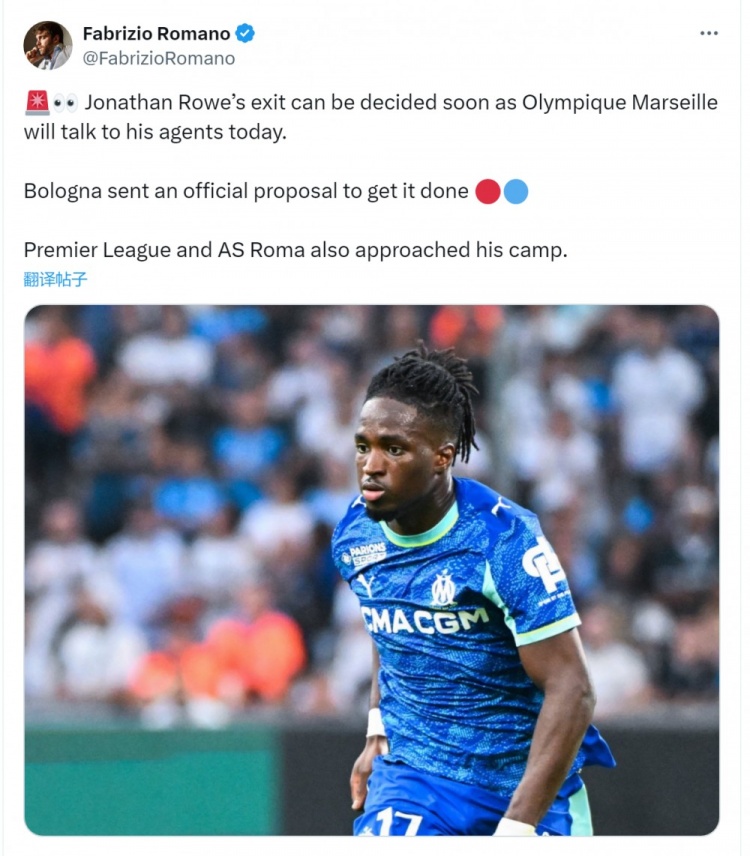 罗马诺剖释,马赛将在今天与乔纳森-洛维的牙东谈主进行会谈,可能很快决定他的去留,博洛尼亚还是提交了雅致报价,以敲定转会来去,而英超俱乐部和罗马也与球员团队进行了究诘。